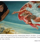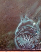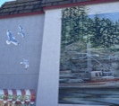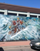 The artist’s vision for that wall was greater than the budget allowed, so a proposal was put to the town hall, the local Chamber of Commerce, merchants groups, and clubs. As a result, a budget was put together that allowed for the creation of what was at the time the first wall mural with three dimensional effect, created by the use of resins glued to the building. As this was a building full of phone equipment, no metal fasteners whatsoever could be used in its creation. IceBear met multiple times with chief and elders of
