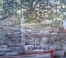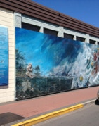 The Cannery Mural, commissioned by the Excel Systems Software Company for their building in Sidney. It depicts the original waterfront in the town of Sidney, the old cannery was replaced by