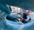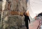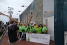 It was the first time that anyone could remember such a joyous social occasion that was joined and witnessed by a hundreds of residents from both local mainstream and First Nations communities. Nil/tu,o became an iconic part of the local landscape, a destination for travelers from all over the world to come for photos . Over the years, as the paint began to fade and the relief elements appeared to be coming disconnected, TELUS decided to have a major refurbishing done. TELUS staff came out to help clean and prepare the wall for the work. When completed, a rededication ceremony was held with many of the same participants as participated in the first event.