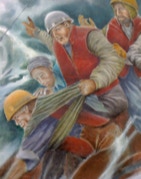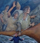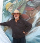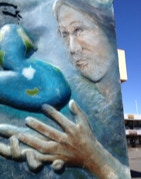 A mural created for TELUS in the late nineties, (BC Tel) and given a major refurbishing a few years ago, was created in the aftermath of some tragic events on this prominent corner in Sidney, BC. In an effort to change the character and ambience of that part of town, the phone company put up seed money for a mural that would unite the native and mainstream community, particularly the youth who used to hang out there. The wall was over 70’ long and almost 20’ high.