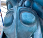 Four Winds: a mixed media sculpture. Commissioned by Amadon Estates in 2009 for installation in front of their building on the upper harbour in Victoria BC. specific requirements were that it appear indigenous, but not tribal, and reflected on the changing environment. Soil conditions on the waterfront prevented the use of heavier materials